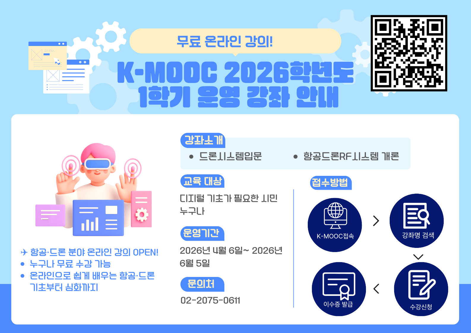 항공대학교 항공드론사업단 2026년 1학기 K-MOOC 강좌 수강 안내