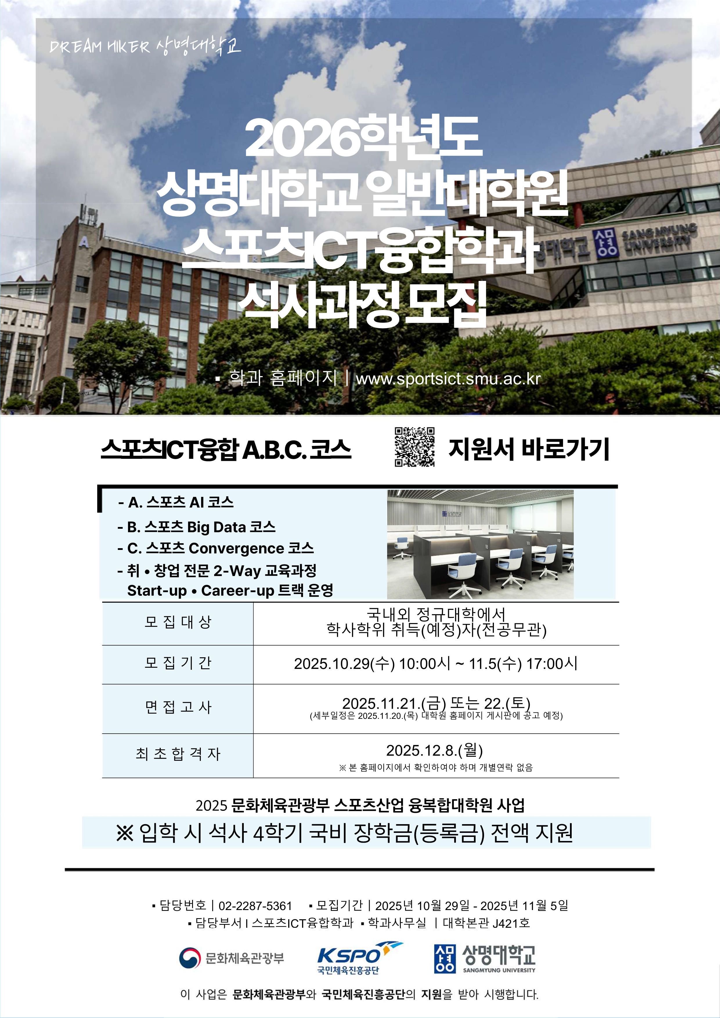 [상명대학교 일반대학원] 스포츠ICT융합학과 2026학년도 전기 신입생 모집